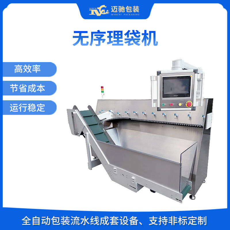 自動(dòng)理袋機(jī)可在生產(chǎn)中單獨(dú)使用,也可以與裝盒機(jī)對(duì)接,完成無規(guī)則的堆積物料從集中到分散再到順序擺放的整個(gè)整理過程。無規(guī)則堆積物料倒入儲(chǔ)料倉后,料倉輸送帶動(dòng)作,將物料輸送至低速滾輪上。設(shè)備通過低、中、高速滾輪的運(yùn)轉(zhuǎn),將物料逐一順序送出理袋機(jī)。送出的物料根據(jù)包裝需要的形式或順序或堆疊進(jìn)入裝盒機(jī)輸送當(dāng)中完成下一工序的裝盒過程。