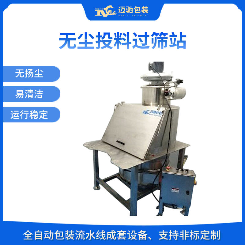 1.無塵投料站由投料平臺、卸料倉、除塵系統(tǒng)、振動篩等部件組成;